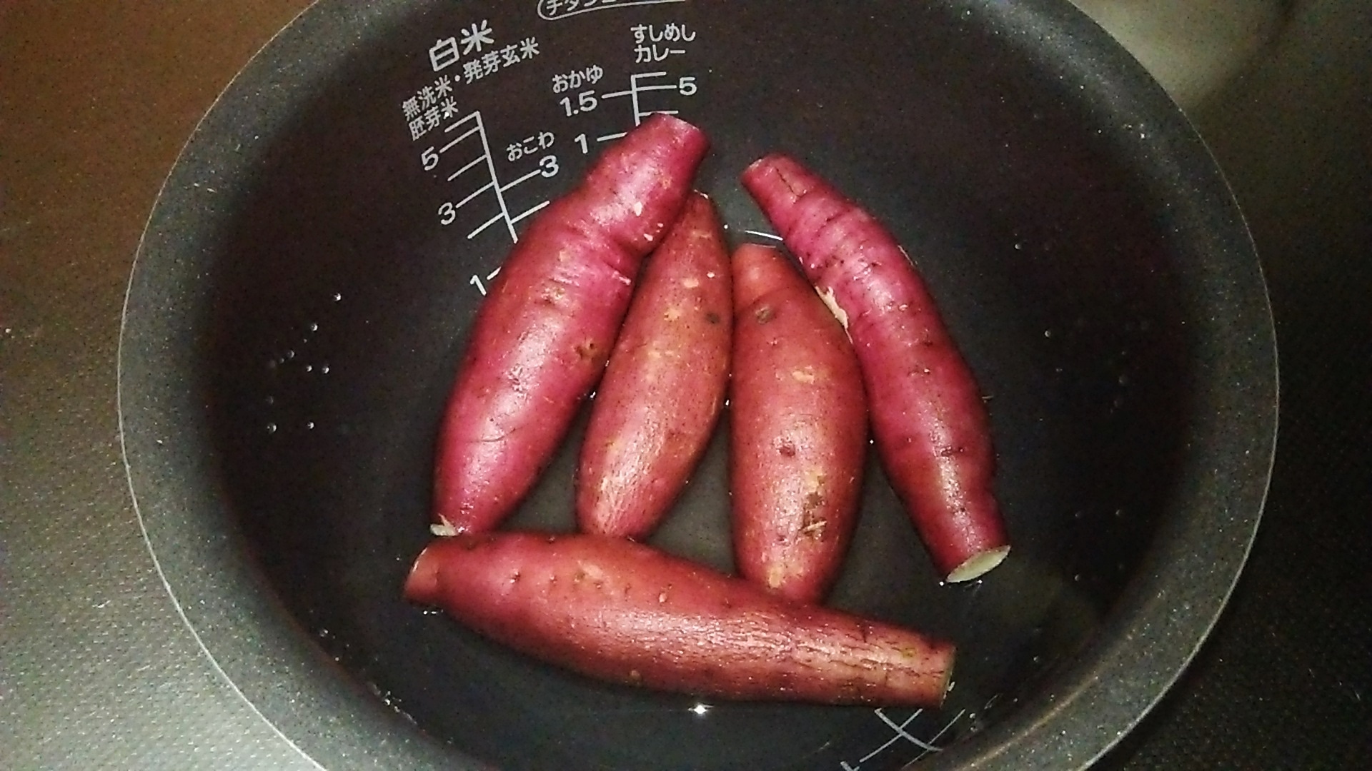 サツマイモにはアミラーゼとういう物質が入っていて、このアミラーゼが澱粉を甘い麦芽糖に変えてくれるのですが、さつまいもの中の温度が40度~75℃の時間が長いとアミラーゼが良く働いて澱粉が分解されて麦芽糖が出来やすくなります。なので、炊飯器でじっくり加熱することによって甘くなるそうです。